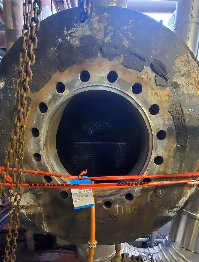 A freshly-opened heat exchanger entry way, waiting for inspection