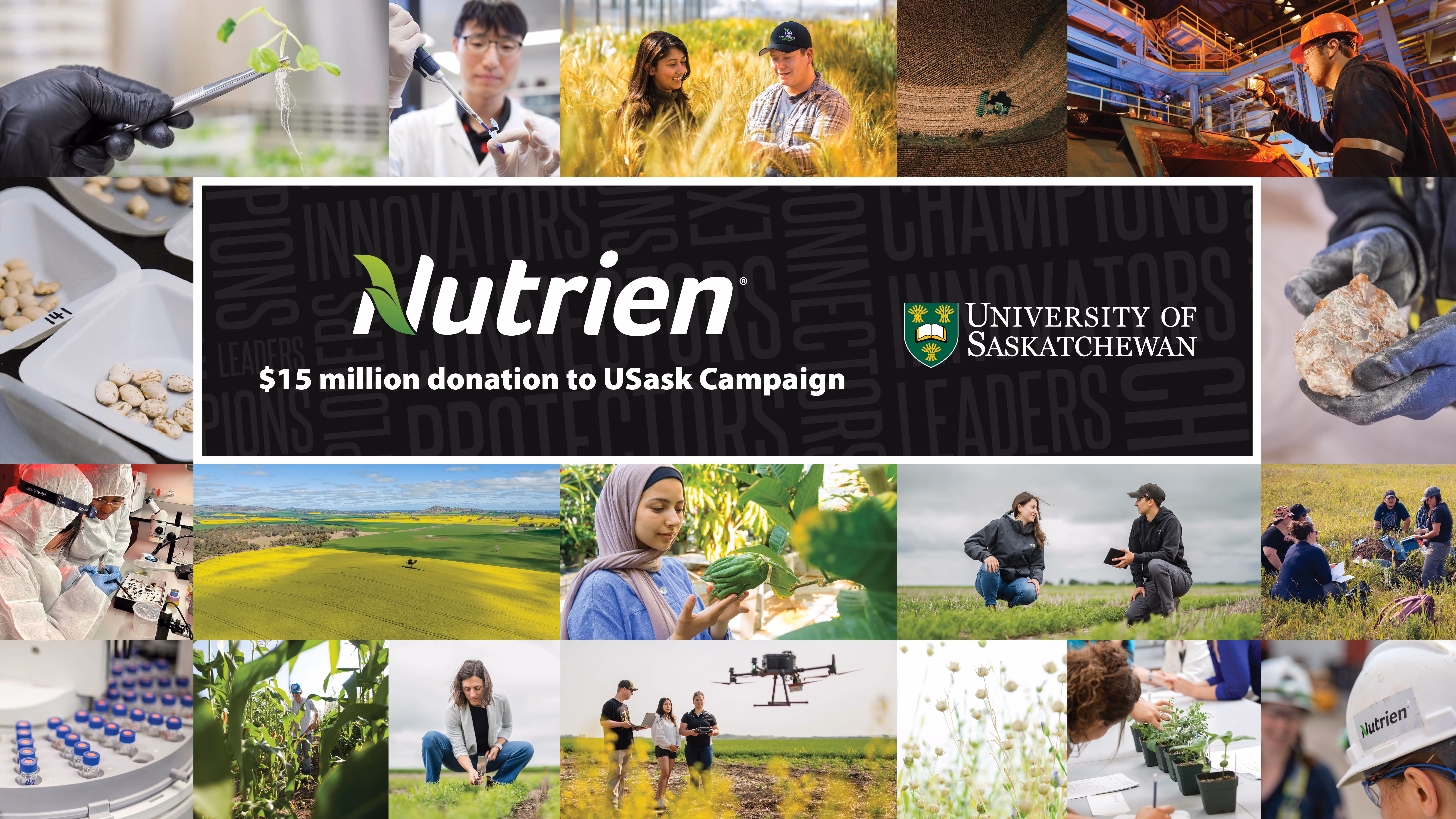 Nutrien’s purpose is to Feed the Future. The University of Saskatchewan (USask) aspires to Be What the World Needs. As long-standing partners, we have joined forces and committed to creating a lasting positive impact for generations to come by advancing innovative and sustainable agriculture around the globe and preparing students to become the next generation of leaders.