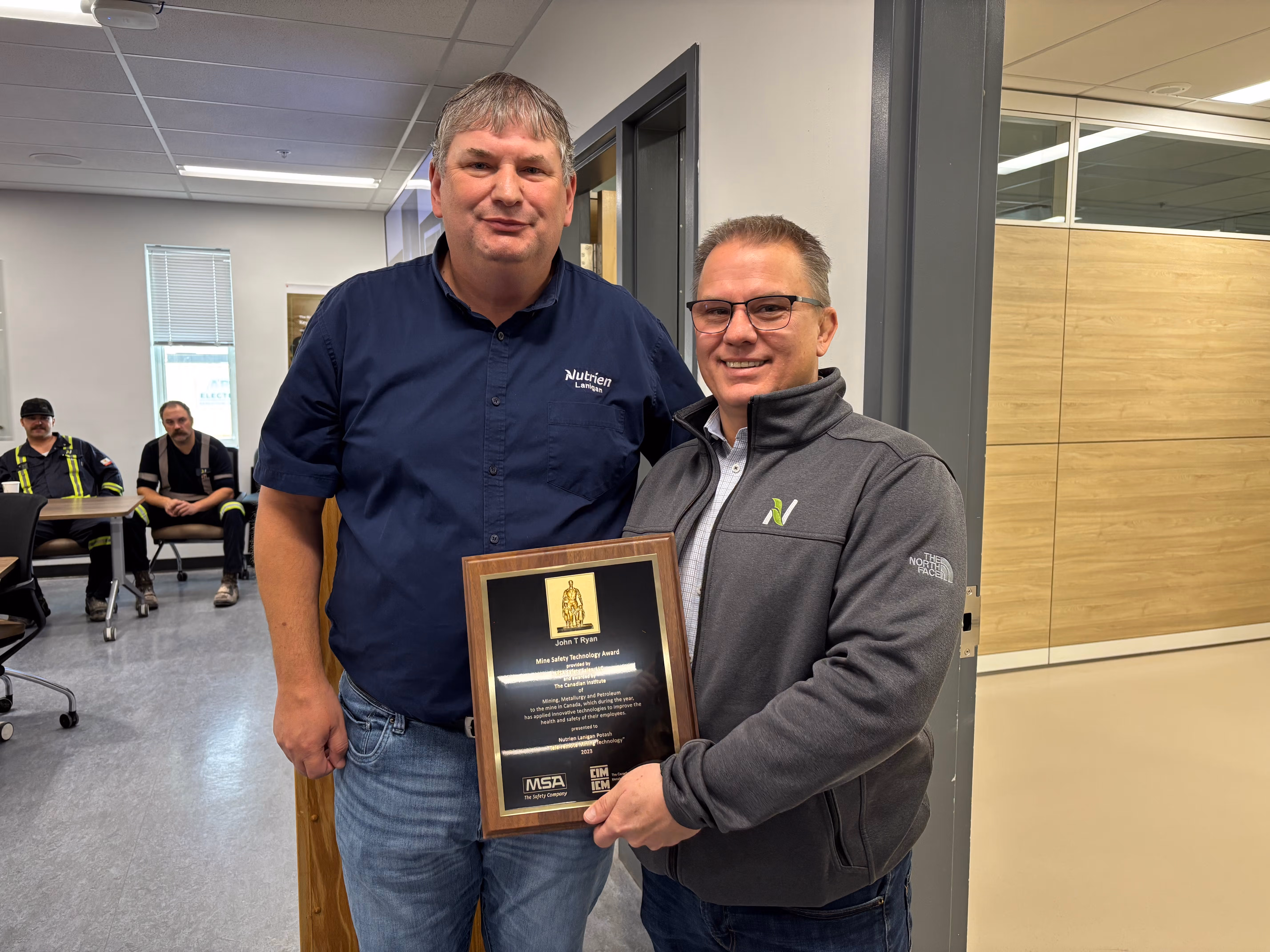 Earlier this year, Nutrien’s Lanigan potash mine team was honored with the John T. Ryan Mine Safety Technology Award by the Canadian Institute of Mining, Metallurgy and Petroleum in recognition of its successful implementation of tele-remote technology to improve the safety of underground potash mining.