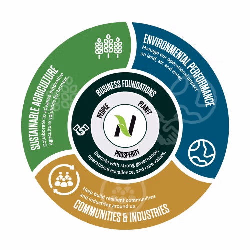 Sustainability at Nutrien aims to create long-term success by addressing relevant risks and opportunities through the lens of people, planet, and prosperity.